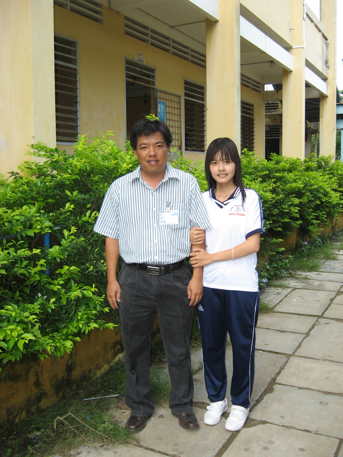 | Thảo Nguyên và thầy Trương Sơn, phó hiệu trưởng trường THPT Nguyễn Bỉnh Khiêm tỉnh An Giang, người có ảnh hưởng lớn đến những nỗ lực học tập của cô. |