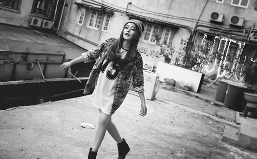 | Hip hop: Chi Pu chọn quần họa tiết và áo nỉ rộng tạo cảm giác thoải mái đậm chất thể thao. |