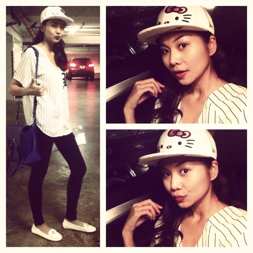 | Xì tin hóa: chiếc mũ Hello Kitty làm điểm nhấn cho set đồ kín đáo vẫn bắt mắt. |