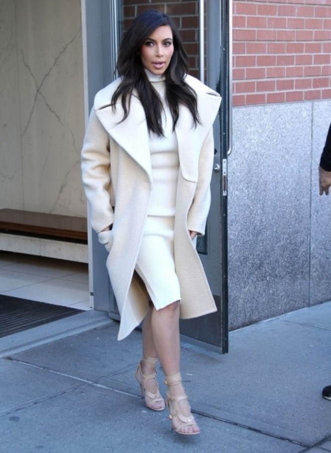 Với Kim Kardashian, cô kết hợp váy liền với áo khoác dáng dài, tuy nhiên bạn cần chú ý tới chiều dài của váy và áo khoác. Chiều dài chân váy nhất quyết phải trên hoặc bằng chiều dài của chân áo khoác. |