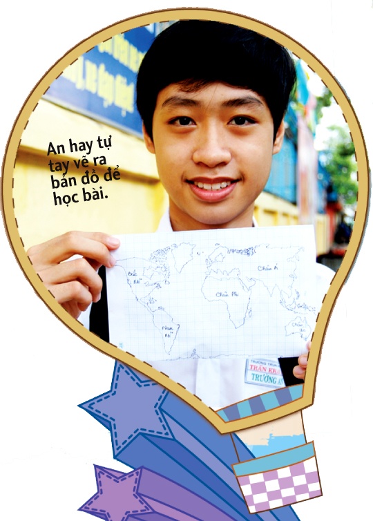 Trường An chia sẻ: “Mình thích vẽ từ nhỏ. Khi bắt đầu làm video mình mới phát hiện rằng mình có thể vẽ được bản đồ, và vẽ được chính xác từng chi tiết gấp khúc của đất đai, vịnh, biển. Từ đó, mỗi lần học bài mình đều vẽ ra bản đồ trước mắt rồi chia nhánh sơ đồ tư duy. Biết được vị trí địa lý thì rất dễ suy ra được khí hậu, đất đai của vùng đất đó”.
