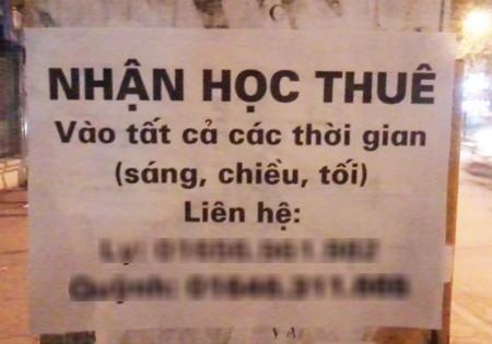 Một tờ giấy quảng cáo học thuê "hiên ngang" trên đường. Ảnh: Phụ Nữ TP HCM. |
