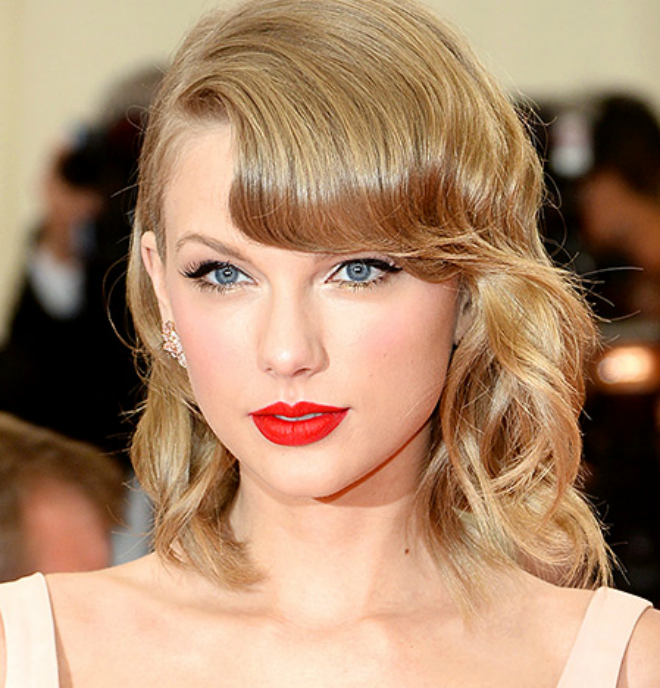 2. Taylor Swift: Mẹo nhỏ để có đôi môi tông màu đỏ cherry quyến rũ như Taylor, bạn cần tạo lớp cho đôi môi. Sau khi đánh lớp đầu tiên, bạn nên thoa thêm phấn phủ bột khoáng (loose powder) lên phần môi trong bị chìa ra. Lớp phấn phủ sẽ giúp màu son bám lâu trên môi và bạn không cần phải liên tục thoa lại lớp son đã trôi mất. |
