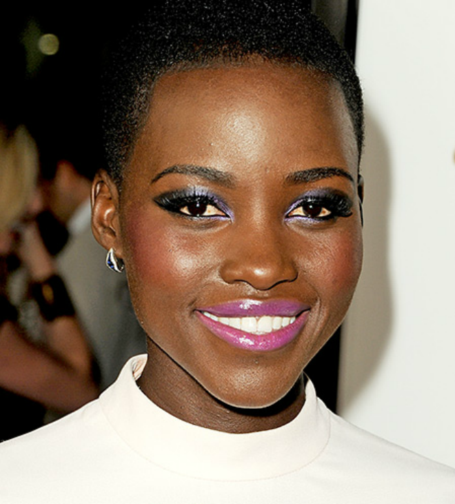 5. Lupita Nyong'o: Nếu bạn có hứng thú với đôi môi hồng tím Neon Lilac như Lupita, hãy thử kết hợp màu môi với kiểu trang điểm mắt cá tính của thập niên 80. Bạn cũng có thể tạo điểm nhấn nhá bằng đôi mắt mèo cá tính để tạo nên phong cách hiện đại, quyến rũ hơn. |