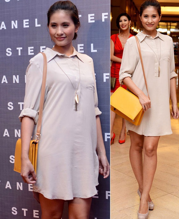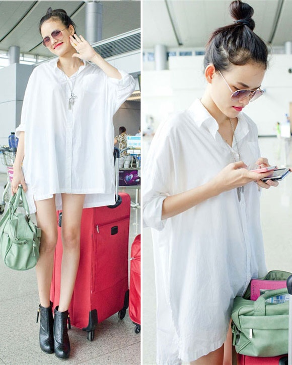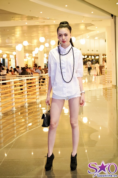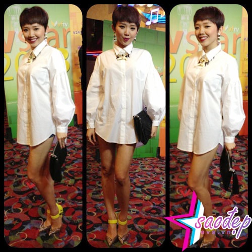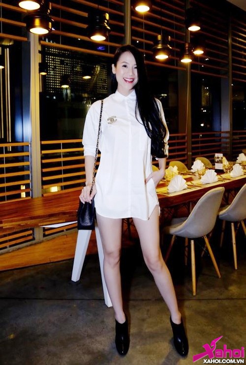 | Đây là cách mà Thái Hà nổi bật khi đi dự sự kiện chỉ với một chiếc váy sơ mi. |