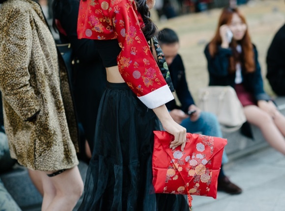 | ... cho tới những mẫu clutch được thiết kế tao nhã với họa tiết hoa trên nền vải may hanbok truyền thống đều được mix rất độc đáo để trở thành nét chấm phá trong tổng thể trang phục. |