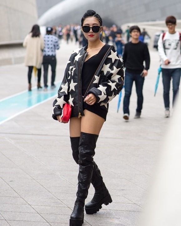 | ... sành điệu với cách mix “quần biến mất” với một đôi boots cao quá gối để khoe khéo đôi chân dài như cô nàng này cũng là gợi ý không tồi. |