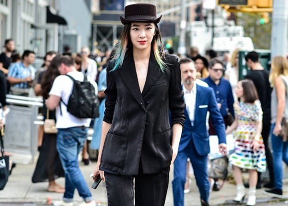 | Chân dài nổi danh Irene Kim trong bộ suit đậm chất menswear và mái tóc nhuộm ombre bắt mắt. |