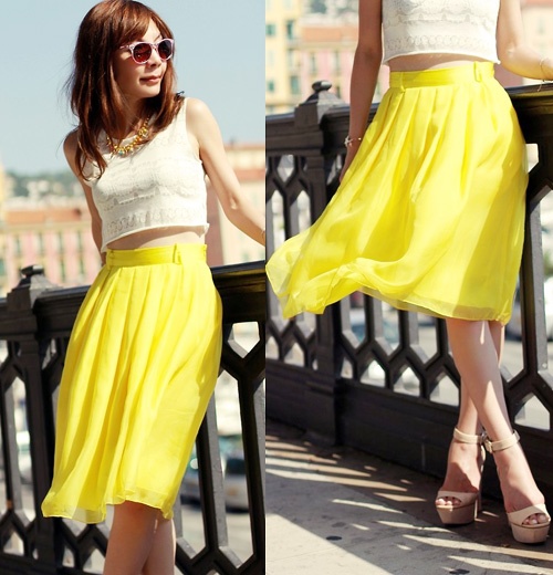 Váy midi mix kèm crop top là gợi ý đẹp mắt cho mùa thu.