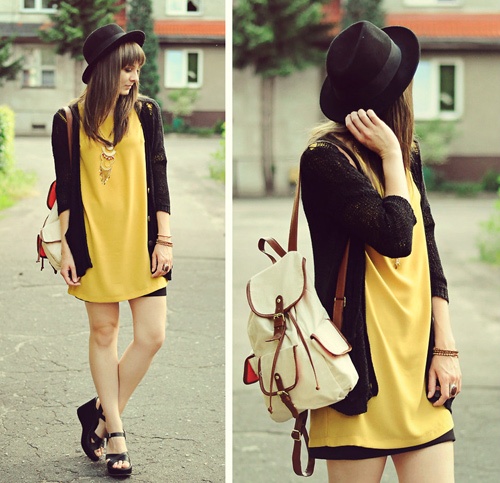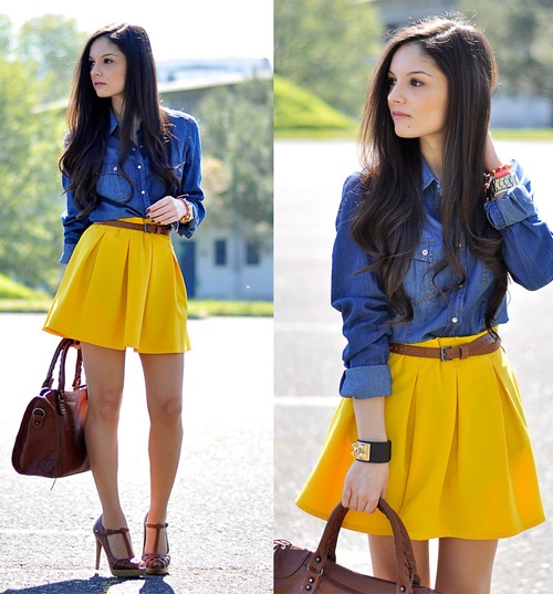 Bạn có thể mix màu vàng với phụ kiện màu nâu hoặc đen.
