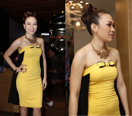 Màu vàng giúp cho nước da nâu của Mỹ Tâm trở nên khỏe khoắn, rạng rỡ.