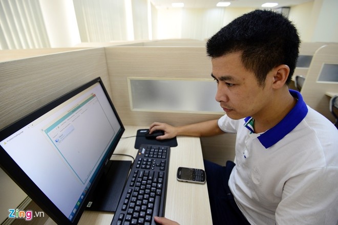| Trong phòng thi máy tính. Ảnh: Lê Hiếu. |