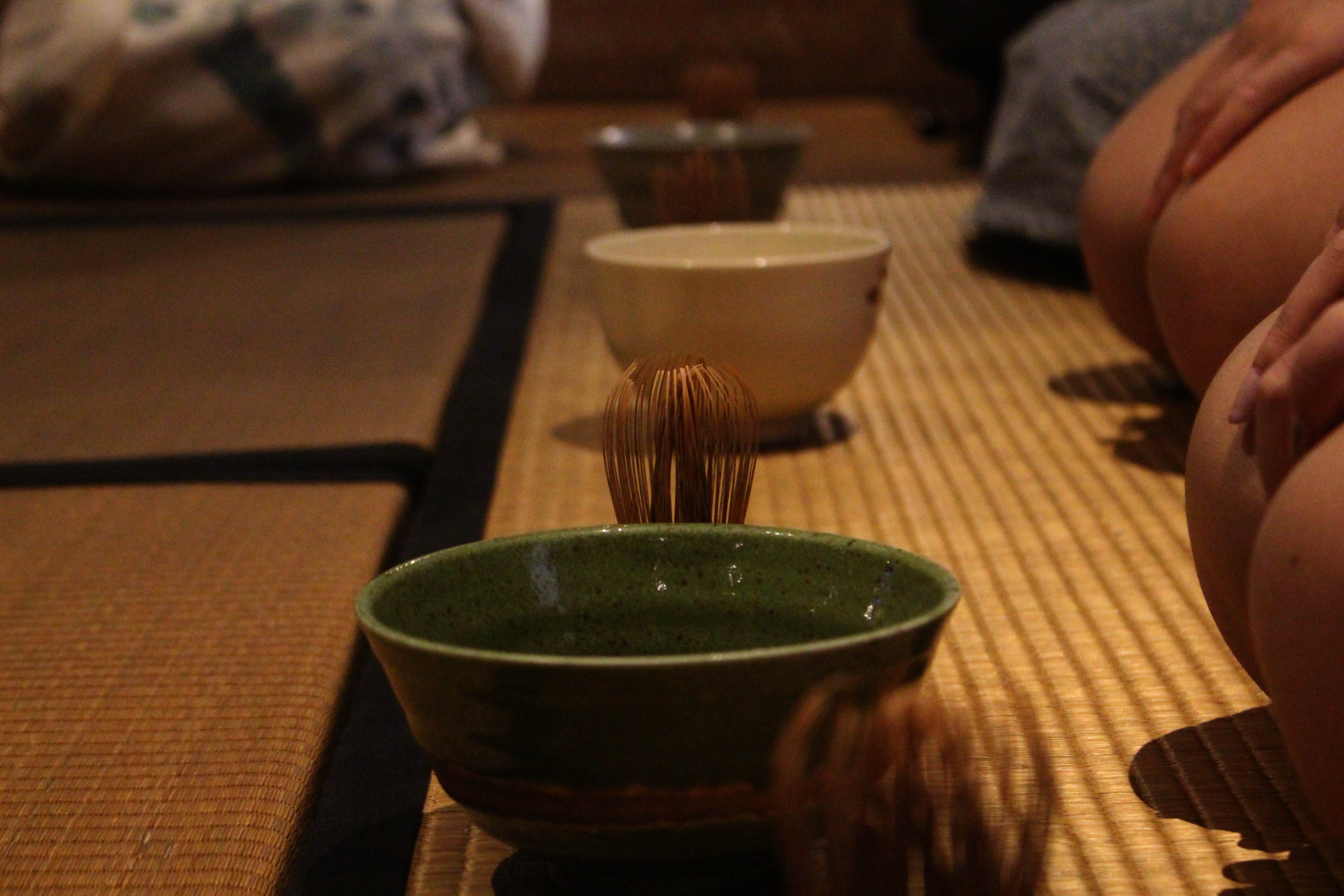 | Trong đó, yêu cầu cao nhất là kỹ thuật đánh tan trà cũng như kỹ thuật tạo bọt hình núi Phú Sĩ trong chén với thao tác vẽ chữ "nô" trong bảng chữ cài Hiragana. |