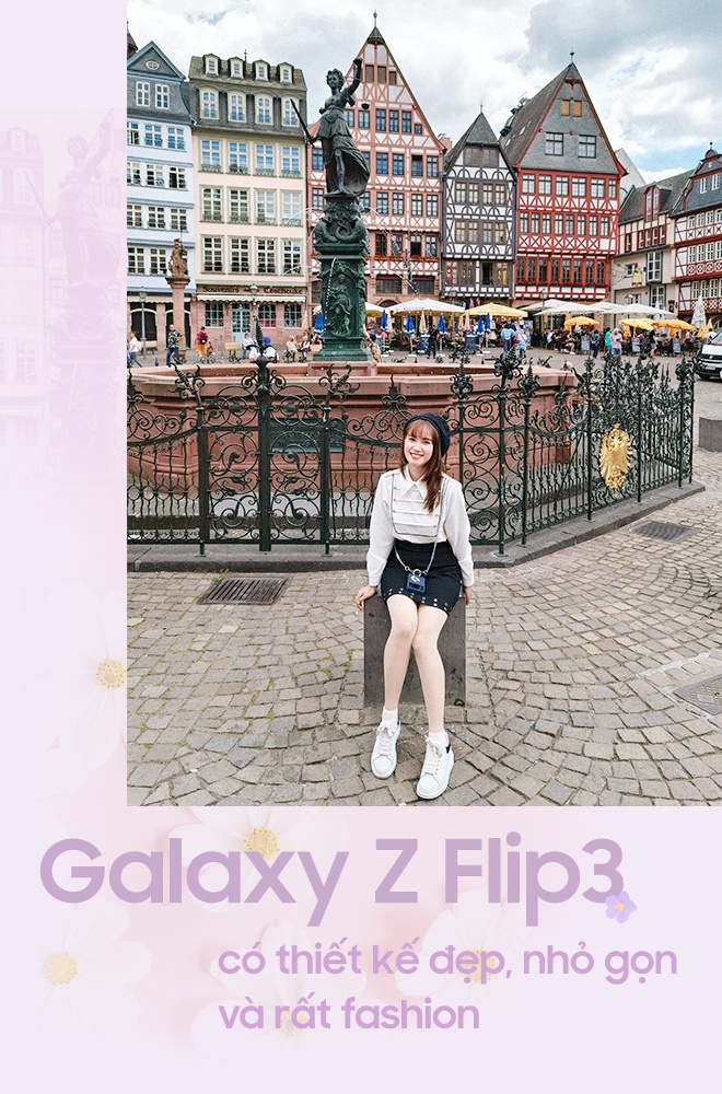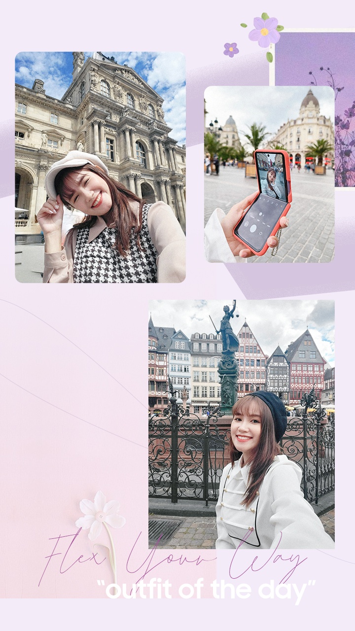 Theo nữ vlogger, lý do lớn nhất cô chọn Galaxy Z Flip3 đồng hành trong chuyến đi là yếu tố thẩm mỹ, bởi máy có thiết kế đẹp và thời trang, đặc biệt khi kết hợp với phiên bản ốp lưng giới hạn Flex Your Way. Ngoài ra, với thiết kế gập, smartphone này cũng nhỏ gọn, khác biệt và nổi bật khi kết hợp cùng các outfit khác nhau trong chuyến đi.