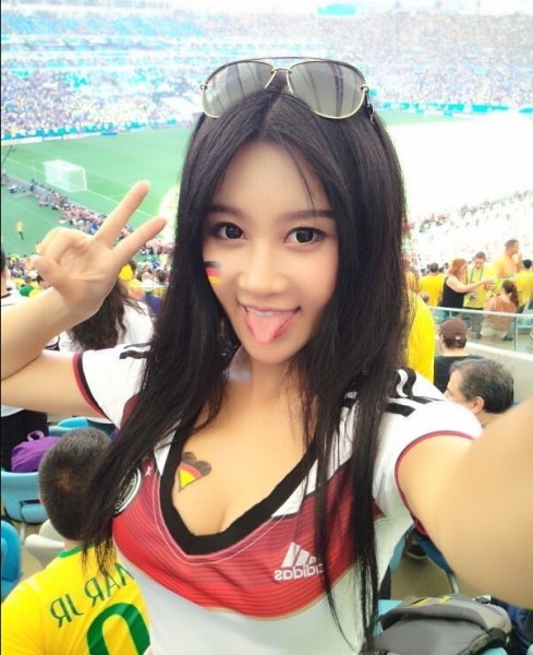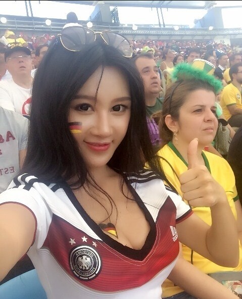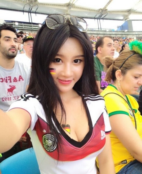 | Cô nàng cổ vũ cho tuyển Đức là người Trung Quốc, có tên Fan Ling. |