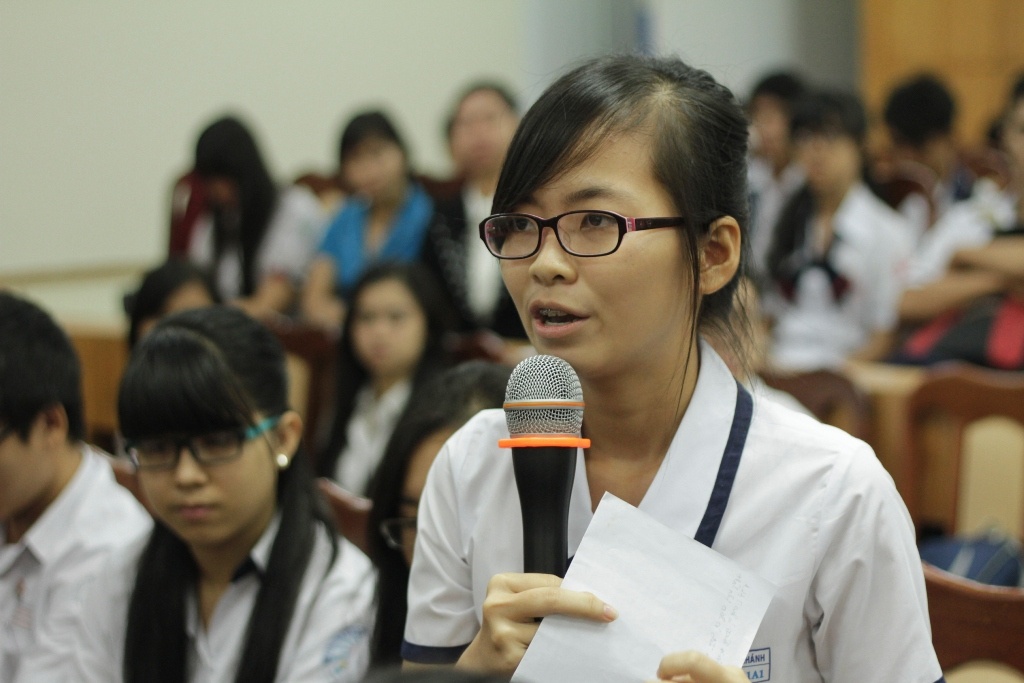 | Các học sinh tham gia đối thoại với lãnh đạo Sở GD-ĐT TP.HCM. |