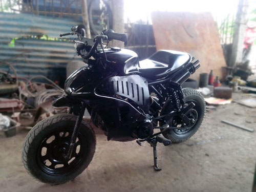 “Dark Night motor” là tên gọi được tác giả đặt cho mẫu xe tự chế, với động cơ 110cc lấy từ chiếc Honda Dream của mình.