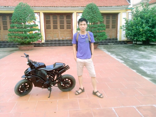 Vũ Đức Thịnh, học sinh lớp 12C5 trường THPT C Hải Hậu, Nam Định là tác giả của mẫu xe mô tô tự chế này. Từ niềm đam mê với những chiếc xe máy, ô tô nói riêng và ngành cơ khí nói chung, Thịnh đã tìm tòi, thiết kế và chế tạo mẫu xe Dark Night cho riêng mình.