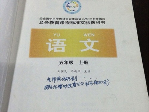 Đài phát thanh Quốc gia Trung Quốc đưa tin cậu bé đã viết trong cuốn vở tập dòng chữ: “Thưa thầy, em không thể làm được điều đó” trước khi tự tử. “Em đã nhiều lần phân vân, do dự có nên nhảy lầu hay không”, nam sinh viết.