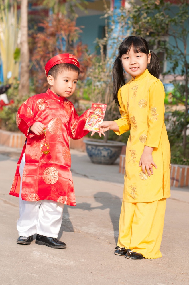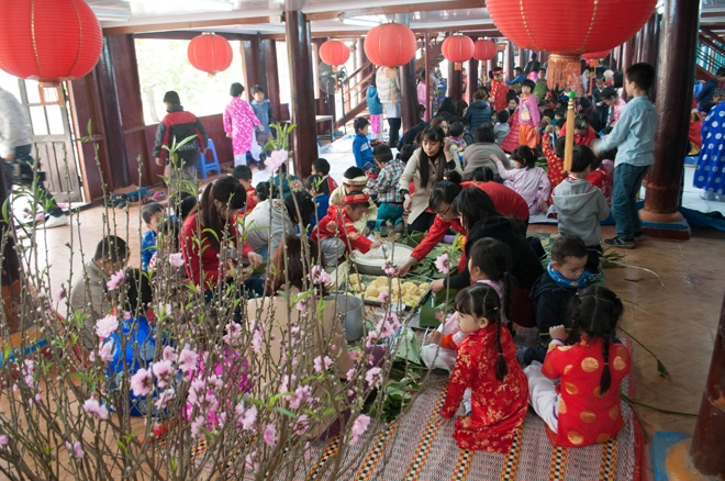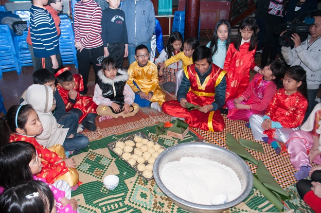 Không khí Tết xưa được tái hiện đầy đủ và chân thật. Đây sẽ là kỷ niệm khó quên của các cô bé, cậu bé này.