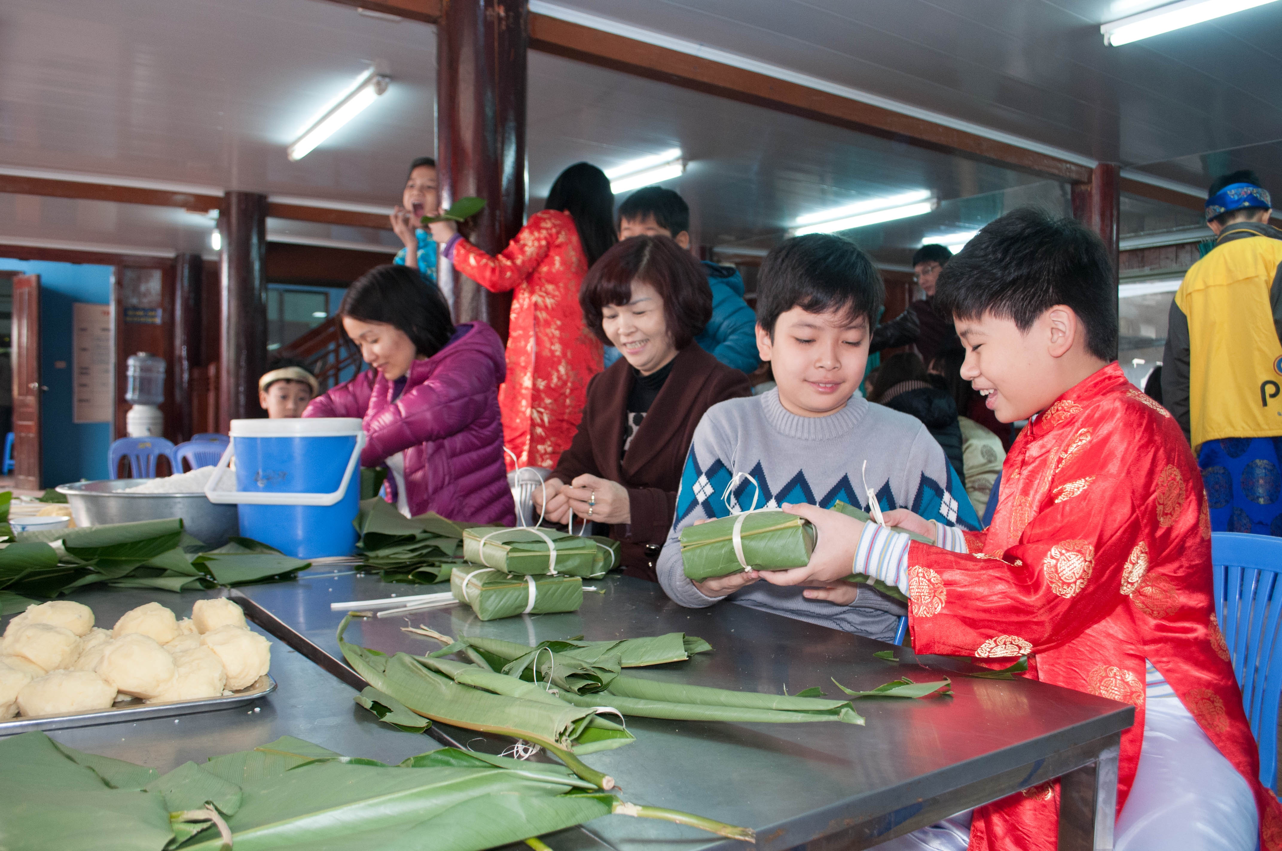 Gói bánh chưng Tết là một trong số chuỗi sự kiện của nhà trường. Sau kỳ nghỉ Tết, trường có chương trình Khai bút đầu xuân để các em cùng tìm hiểu về thư pháp và đạo học.
