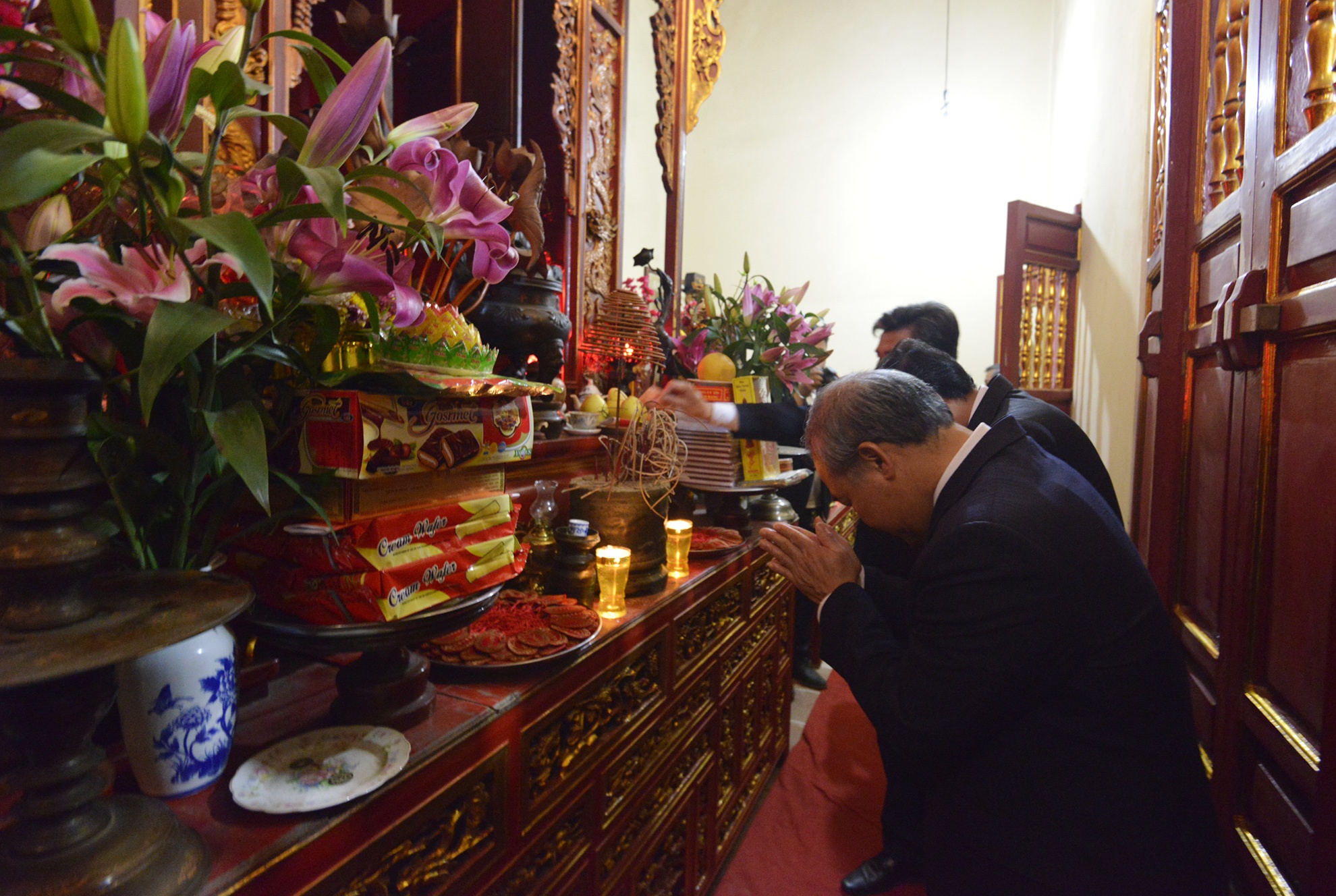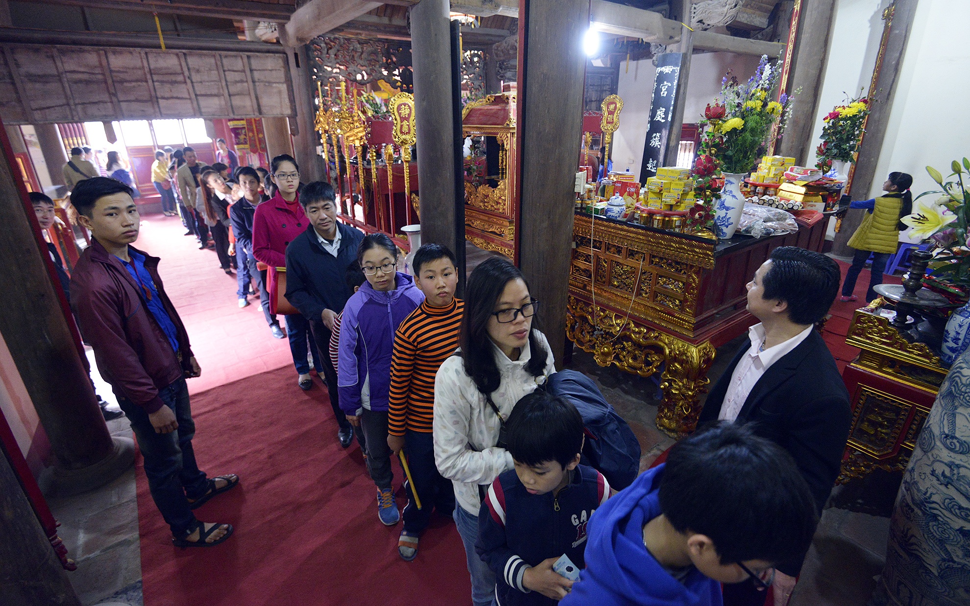 Sau khi xong các thủ tục tế lễ, dòng người vào bên trong đình, trong đó có nhiều em nhỏ dâng hương lên ban thờ thầy giáo Chu Văn An.
