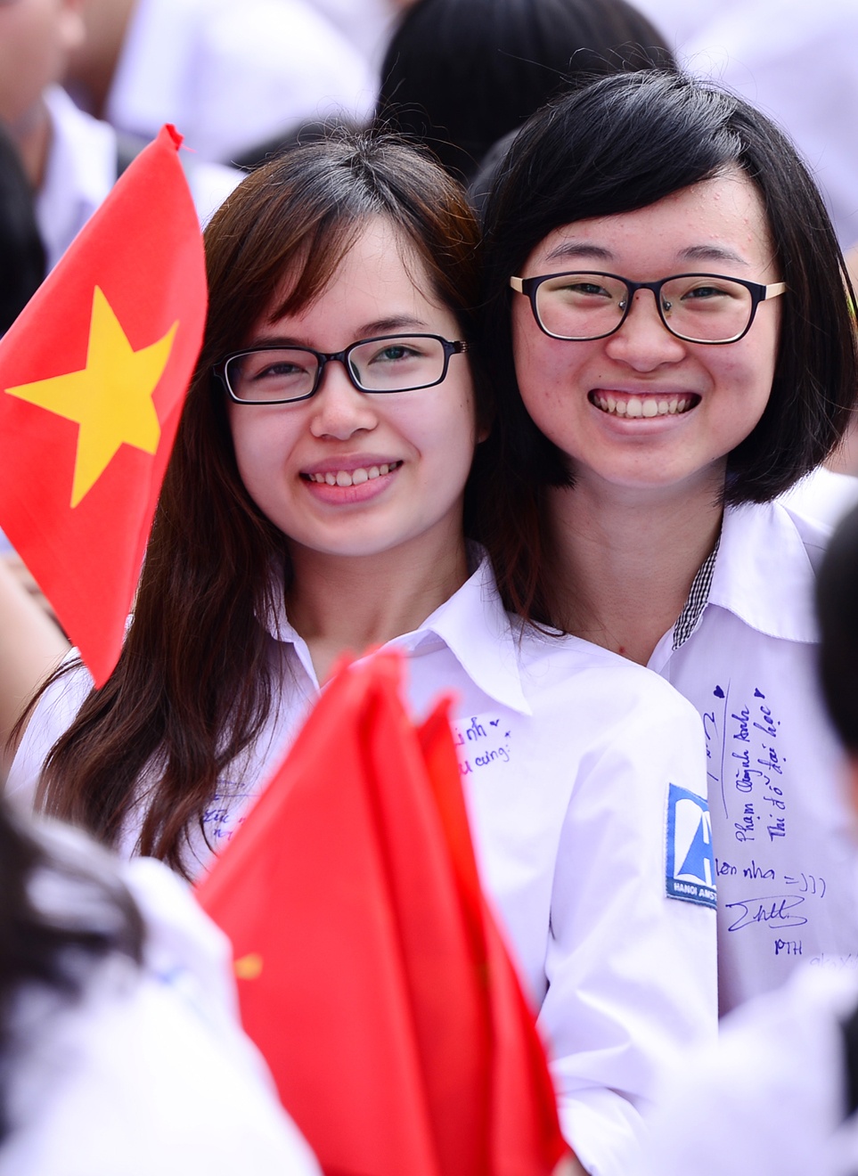 | Kết thúc lễ chào cờ, hơn 2.000 học sinh trường tiếp tục tham gia lễ bế giảng năm học 2014. Các học sinh lớp 12 chuẩn bị bước vào kỳ thi tốt nghiệp và tuyển sinh đại học.