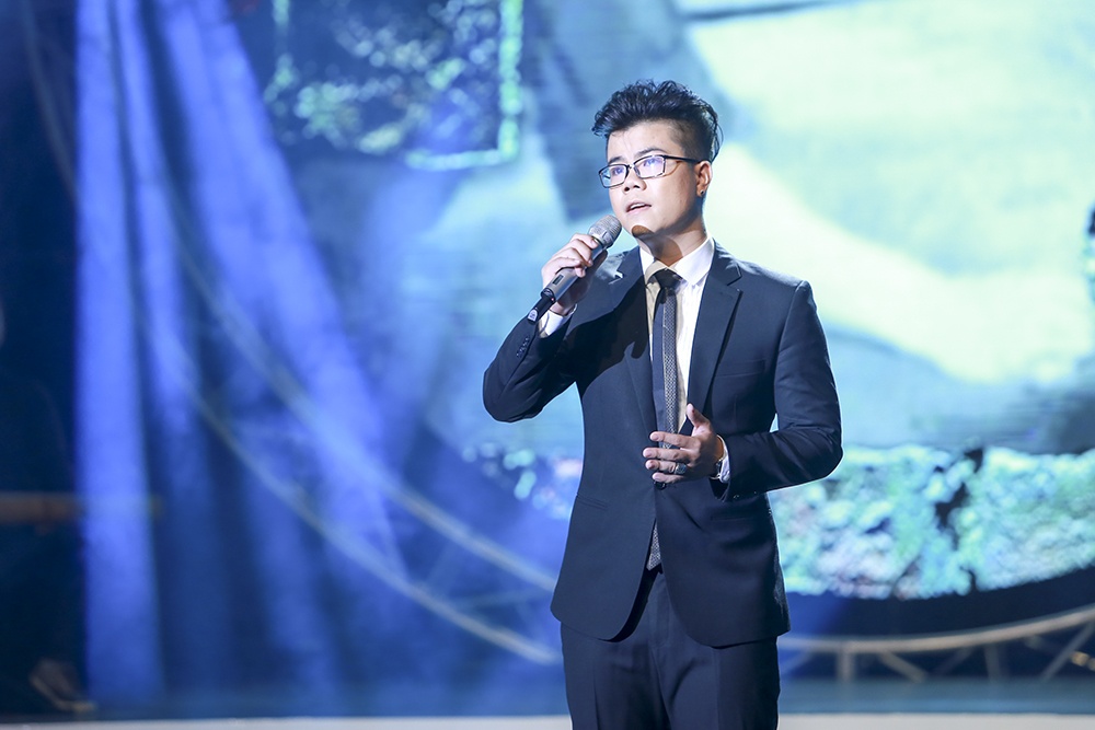 | Quốc Minh tạo được thiện cảm với khán giả khi trình diễn ca khúc Về với anh. |