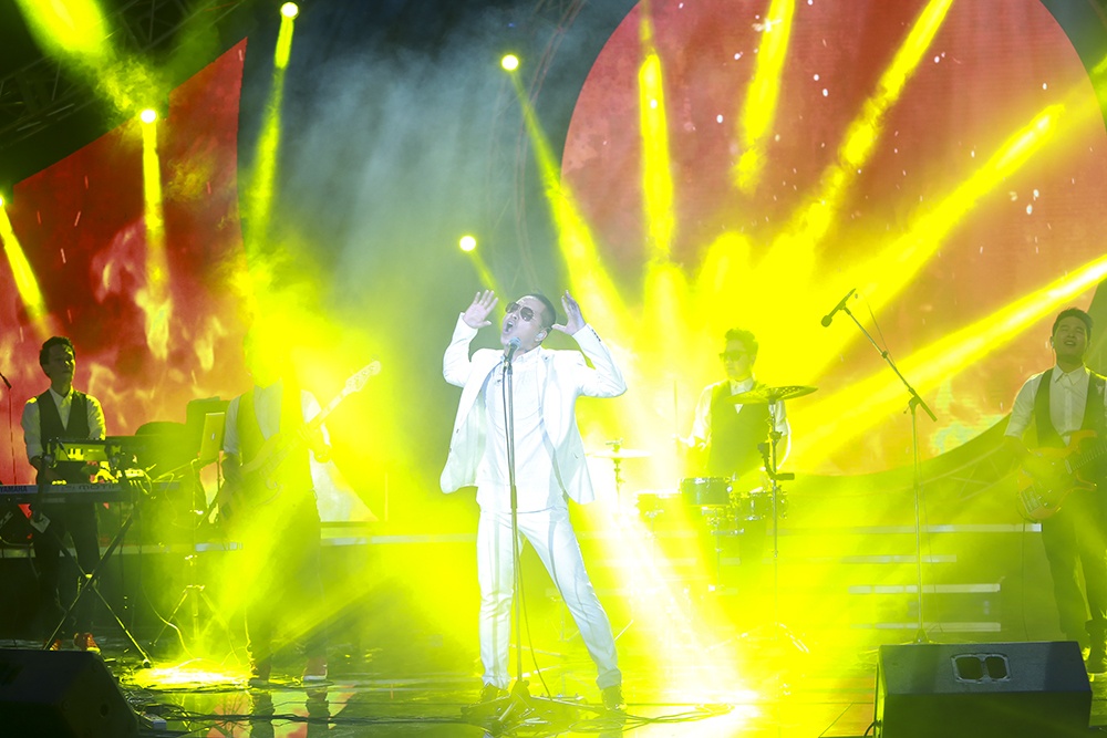 | Tuấn Hưng trình diễn ca khúc Anh sẽ không đổi thay cùng với ban nhạc Màu nước. Nam ca sĩ khiến khán giả bất ngờ khi thể hiện hàng loạt các nốt cao treo phía cuối bài hát. |