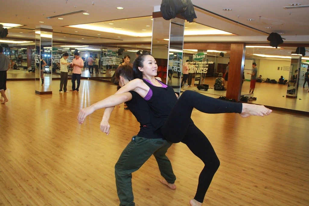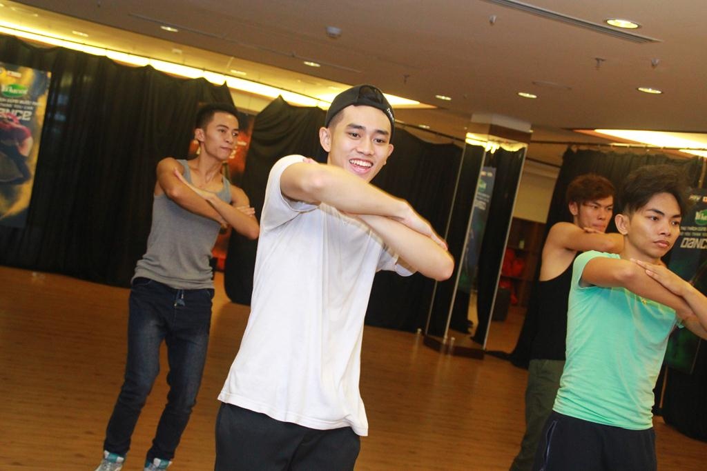 Trên nền nhạc Kiss You của One Direction, chắc chắn Minh Trường sẽ tự tin để thể hiện mình dù chiều cao và cân nặng của anh khá “khớp” so với bạn nhảy Phi Phụng. |