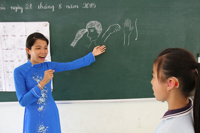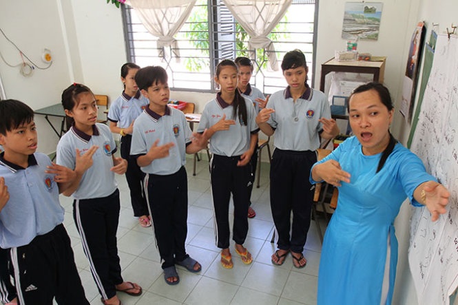 Dạy học trò khiếm thính thuộc lời bài hát và thực hiện các ký hiệu tay chuẩn xác là công việc vô cùng khó khăn, vất vả.
