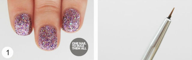 Sau khi lớp sơn nền khô, dùng bút vẽ hoặc cỏ vẽ đầu mảnh chia móng tay thành 6 - 8 phần tùy thích theo những hình tam giác.