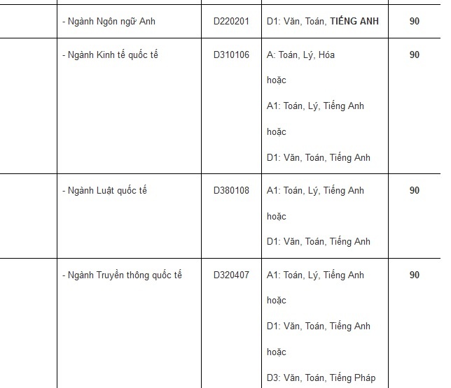 Các môn nhân hệ số 1, riêng ngành Ngôn ngữ Anh nhân hệ số 2 môn tiếng Anh.