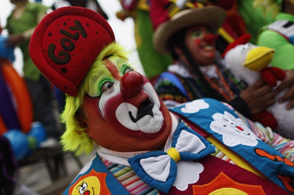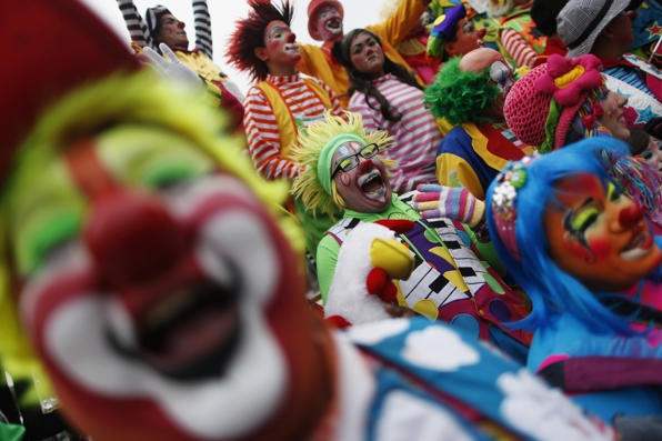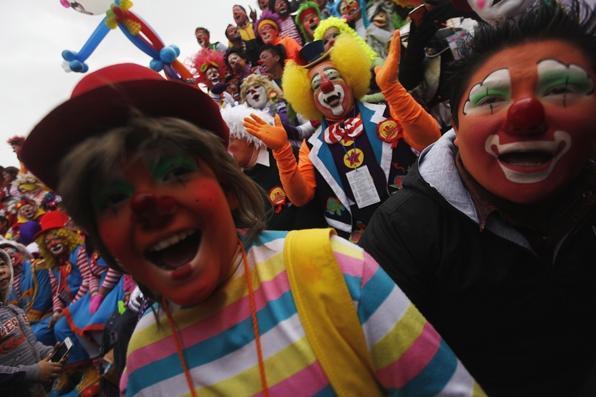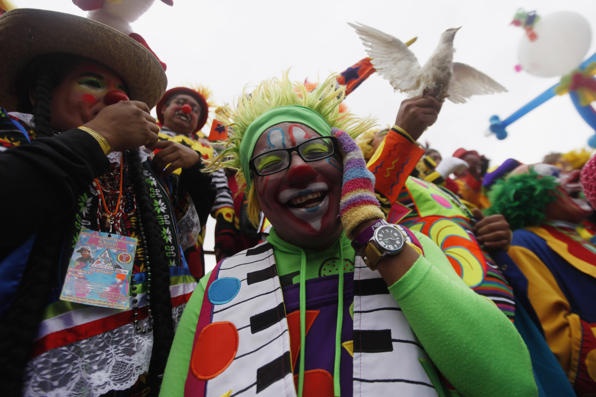 | Hàng nghìn "chú hề" với trang phục sặc sỡ và mái tóc độc đáo đã tham dự hội chợ cười lần thứ 14 tại Mexico City. Ảnh: Reuters. |