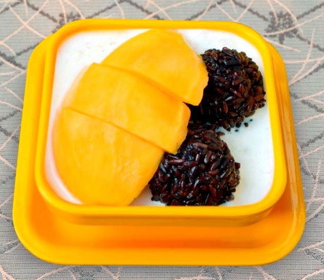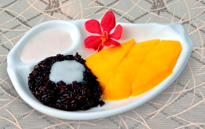 Nếu thử món này tại đây, bạn sẽ phát hiện nó có khá nhiều điểm khác biệt với món xôi xoài ở các quán khác. Đầu tiên, loại nếp được dùng nấu xôi là nếp cẩm, loại nếp có giá trị dinh dưỡng hơn nếp trắng. Điểm nhấn thứ hai của món chè chính là nước cốt dừa được pha chế theo cách riêng sao cho vừa có vị béo, mặn, thơm đặc trưng.