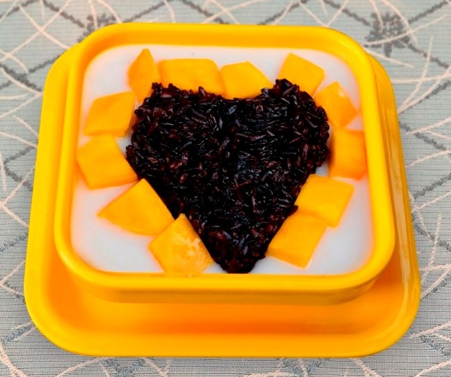 Vĩnh kết đồng tâm có tạo hình khá đặc biệt của khối nếp cẩm hình trái tim nổi bật trên tông màu vàng của xoài, trắng của sữa chua. Ngoài điểm nhấn về tạo hình, sữa chua do quán tự làm và mix với hàng loạt nguyên phụ liệu để nó có hương, vị khá không đụng hàng. Đặc biệt, nếu tinh ý, bạn sẽ nhận thấy thoảng vị béo thơm đặc trưng của nước cốt dừa.