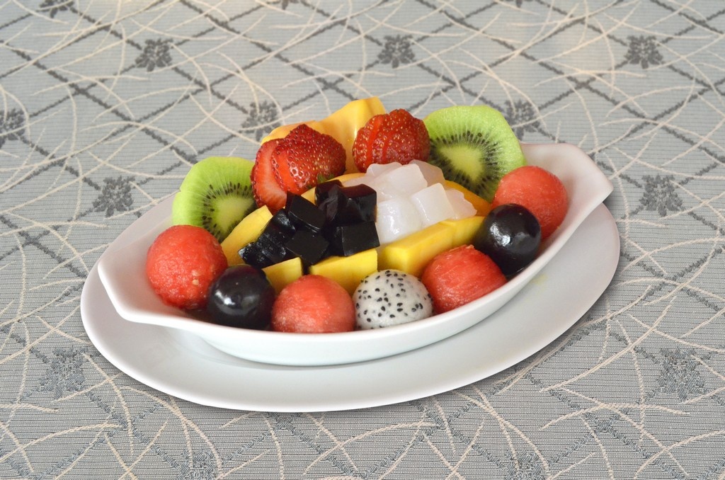 Tên gọi như vậy song thực chất đây là món trái cây đĩa quen thuộc với mọi người. Điểm nhấn là tại đây, nó được định hình với xoài cùng hàng loạt trái cây khác nhau như kiwi, nho, dâu tây, mít, dưa hấu, thanh long, sương sáo, thạch dừa... Đặc biệt, món này không dùng chung với muối mà dùng với nước sốt chanh dây chua chua ngọt ngọt.