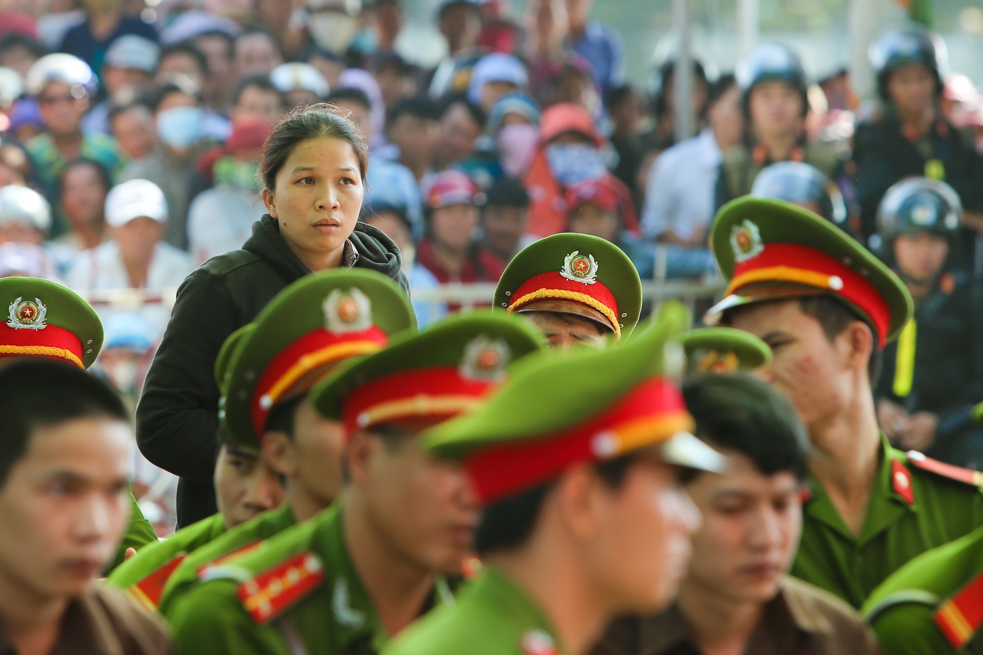 | Phiên tòa diễn ra trong sự phẫn nộ của nhiều người vì tính chất man rợ, tàn ác của các bị cáo. Có khoảng 400 cán bộ, chiến sĩ công an được huy động tới phiên xử. |
