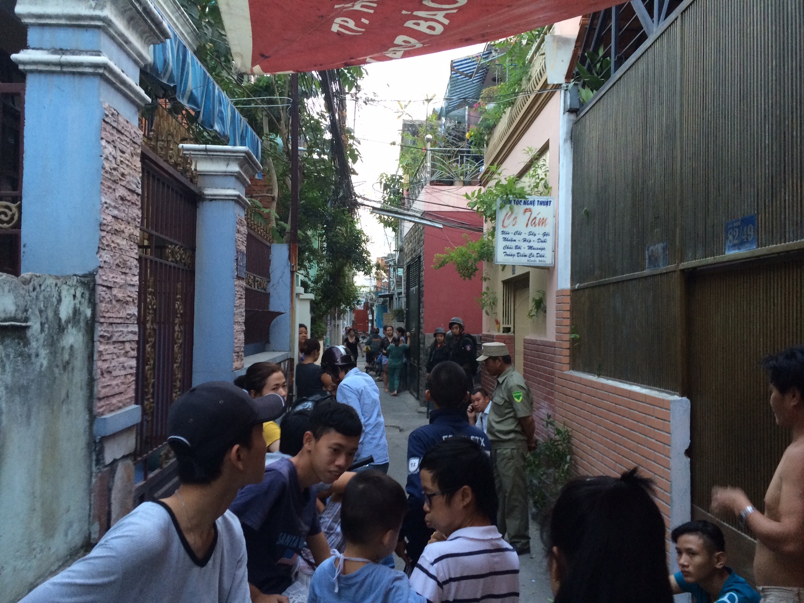 Đến 18h30, công an vẫn chưa kết thúc việc khám xét nhà của Quang tại 82/45/4/10 Đinh Bộ Lĩnh, phường 26, quận Bình Thạnh, TP.HCM.