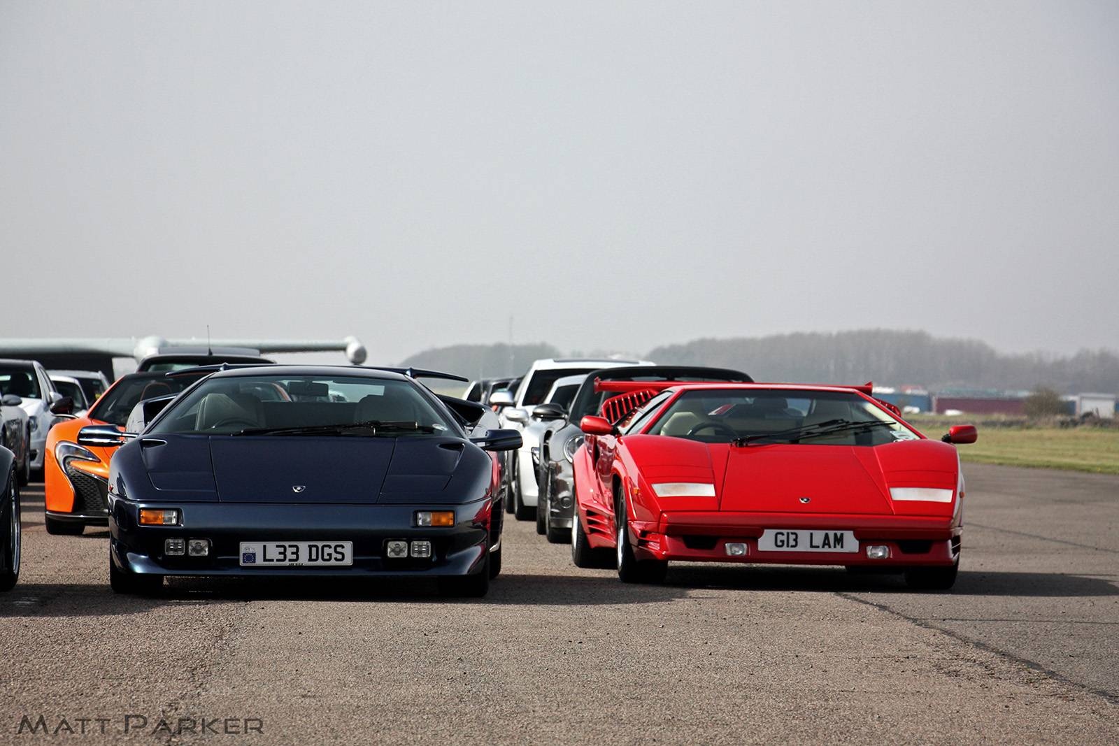 | Siêu xe cổ Lamborghini Countach màu đỏ, nổi bật giữa một loạt xe đương đại đến từ Porsche, Audi, McLaren... |