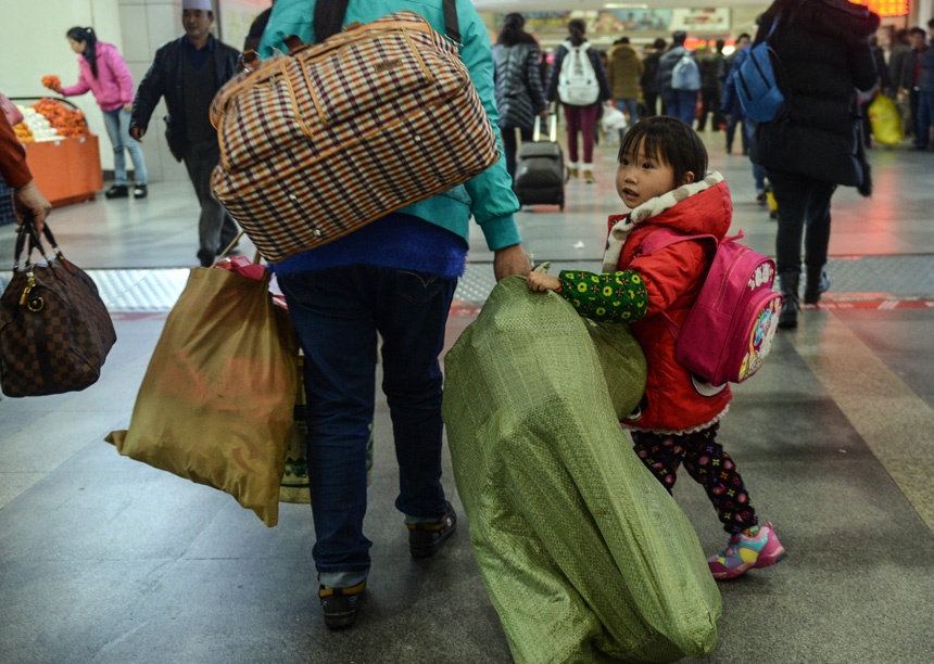| Hai mẹ con tạm trú tại Chiết Giang bắt đầu về nhà đón ngày lễ cổ truyền. Ảnh: Tân Hoa xã. |