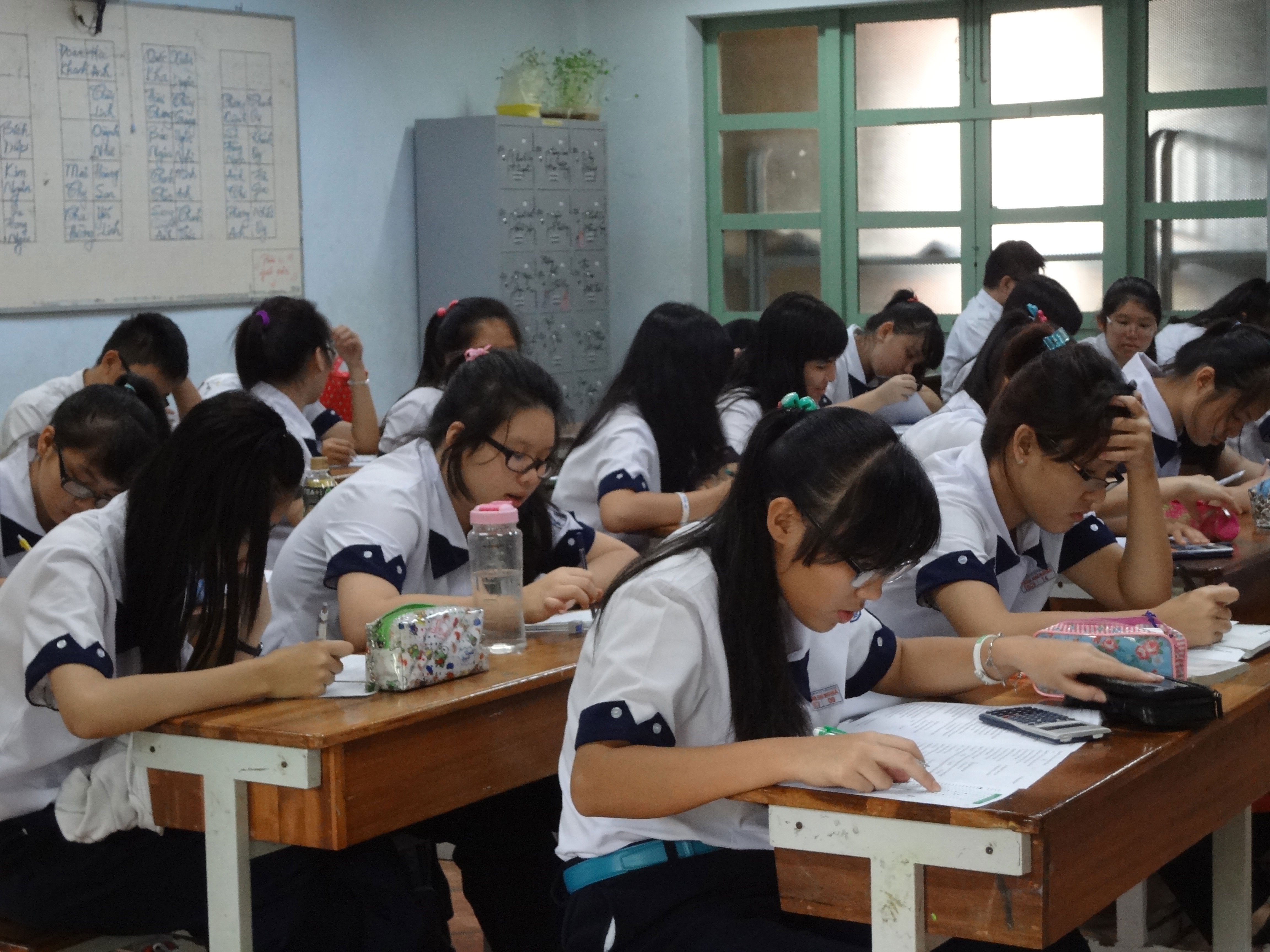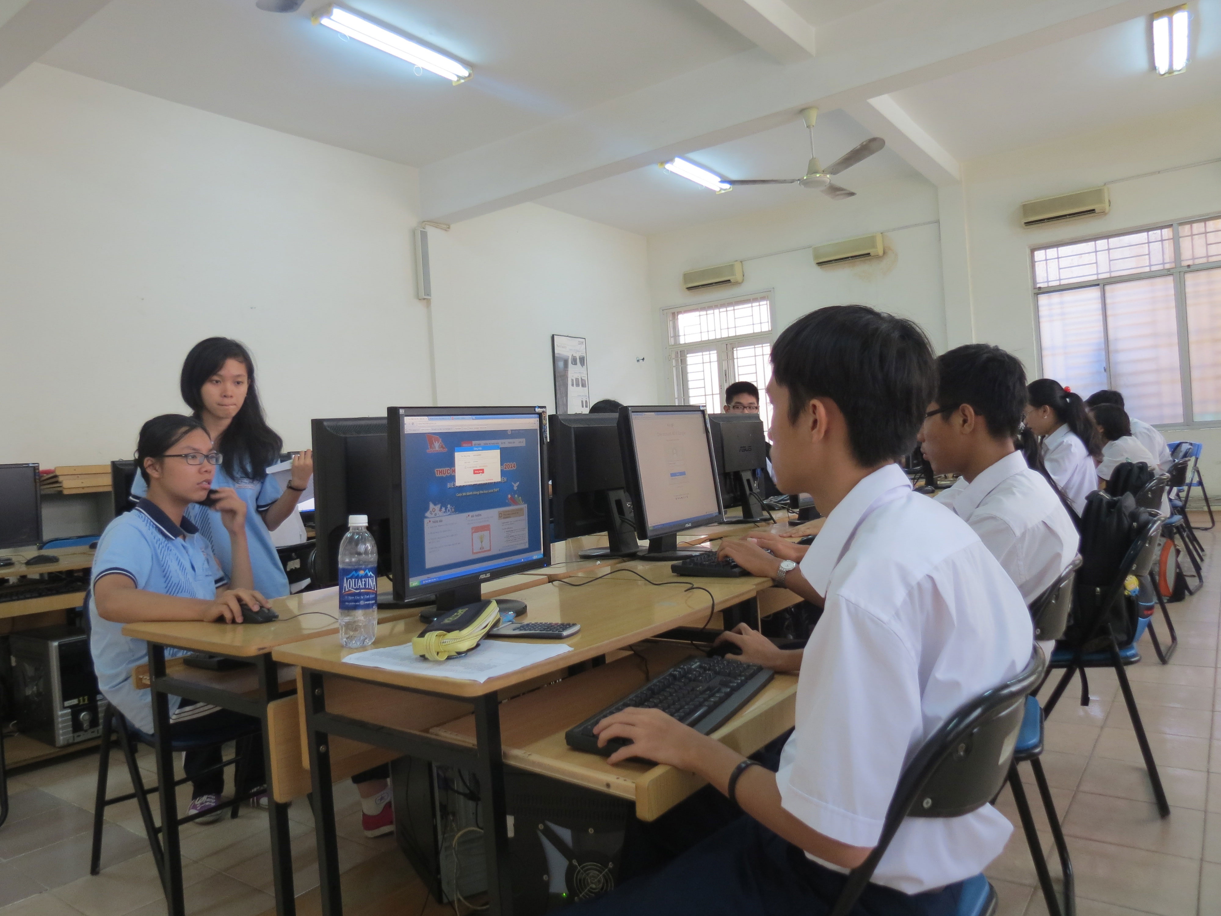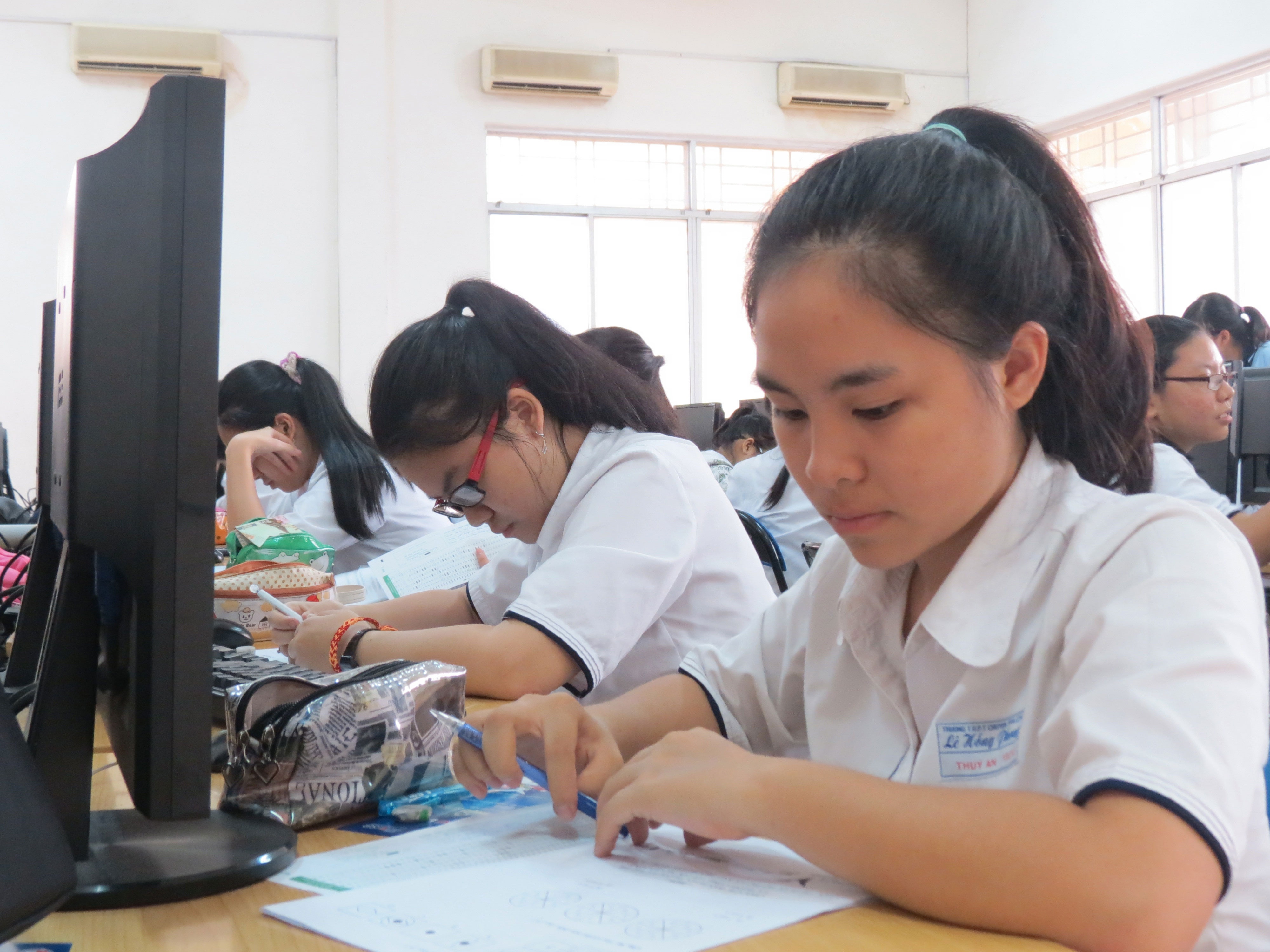 | Học sinh trường TPTH chuyên Trần Đại Nghĩa thực hiện bài thi trắc nghiệm vòng sơ loại |