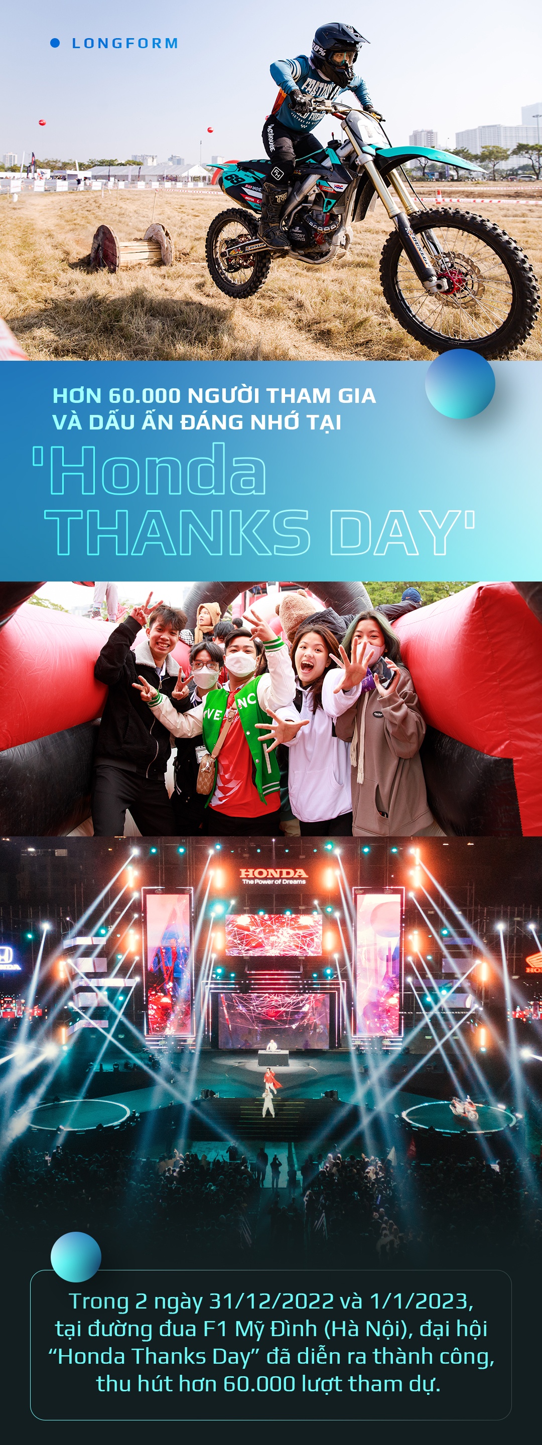 Tâm điểm của Honda Thanks Day trong ngày 31/12/2022 phải nhắc đến cuộc đổ bộ của hơn 1.000 xe phân khối lớn, xe máy phổ thông, ôtô trong màn diễu hành trên đường đua F1. Nhiều khán giả tham gia sự kiện bày tỏ sự ấn tượng với quy mô hoành tráng của màn diễu hành độc đáo này.