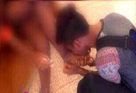 Hình ảnh cô gái được làm mờ đi, đang ngồi gác chân và được cậu bạn trai nâng niu bàn chân trái và hôn lên đó.