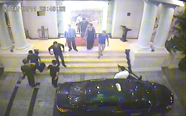 Theo hình ảnh camera ghi lại, có một người mặc quần áo công an, mang súng đến trước cửa khách sạn. Liền sau đó, người đàn ông mặc áo đen tham gia cuộc hành hung rút từ trong người ra một chiếc thẻ, đưa cho người mặc quân phục xem. Sau đó, cả nhóm người lạ mặt lên xe rời hiện trường.