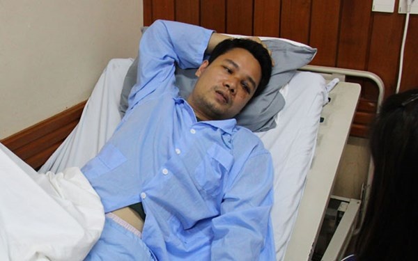 | Anh Nam bị thương sau vụ xô xát và đang phải nằm điều trị tại bệnh viện Việt Đức. |