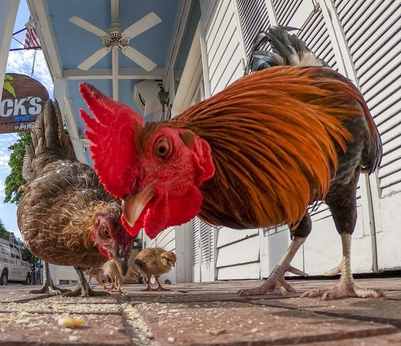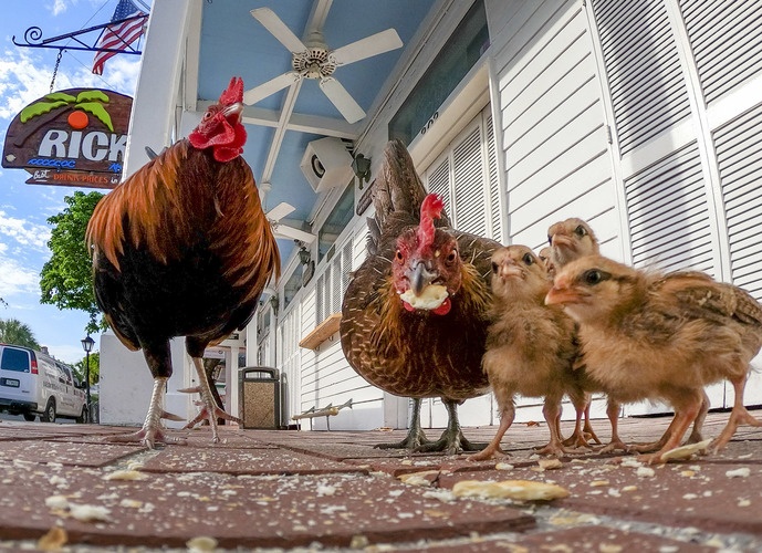 | Khi đàn gà ngày một đông, năm 2004, chính quyền Key West thuê một người bắt gà để giảm số lượng. Sau đó ít lâu, người này phải nghỉ việc vì tranh cãi nổ ra trong cộng đồng. Dân cư yêu quý lũ gà đặt câu hỏi điều gì sẽ xảy ra với chúng sau khi bị bắt. Ngày nay, chính quyền Key West ban hành luật cấm giết gà trên đất công. Đây là điều kiện lý tưởng để lũ gà hoang sinh sôi nảy nở. Ảnh: CityMetric. |