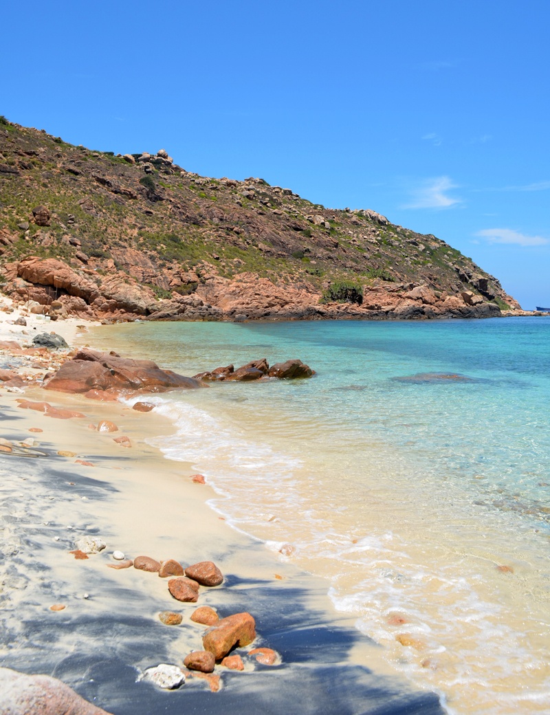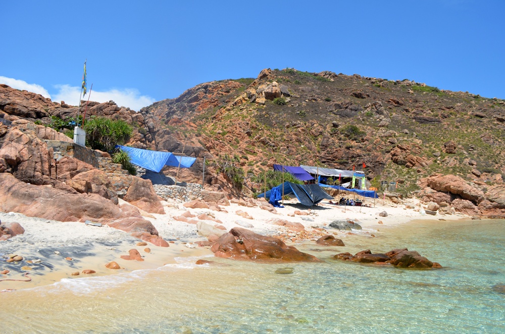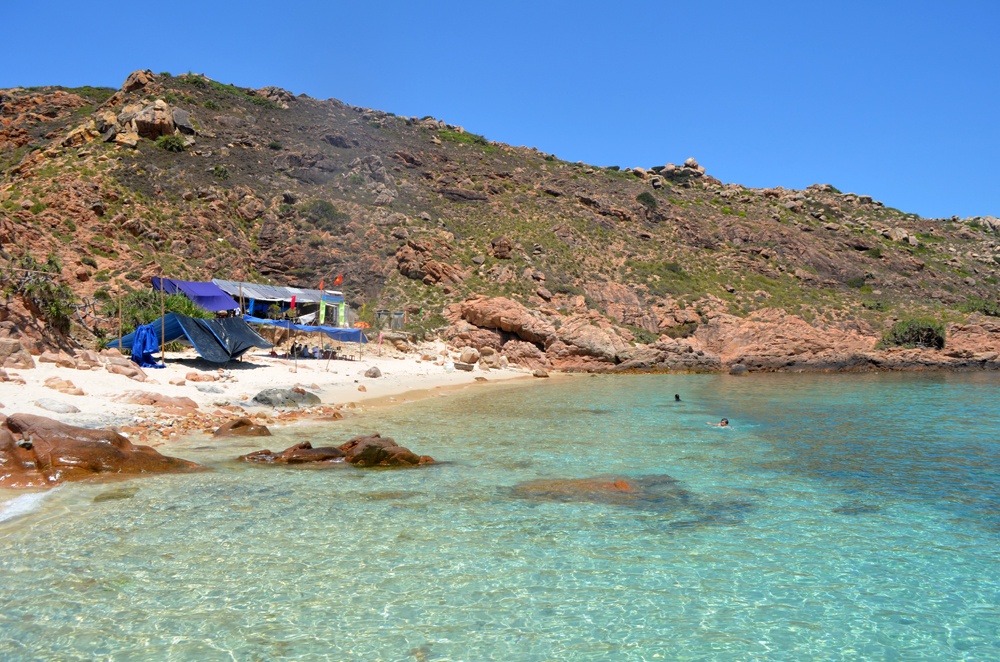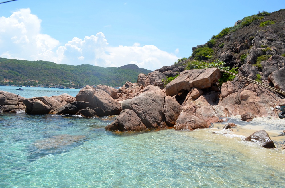 | Bãi biển ở quanh hòn Khô rất có nhiều đá, nhưng đây là một trong những nơi có bãi tắm biển sạch, hoang sơ nhất. |