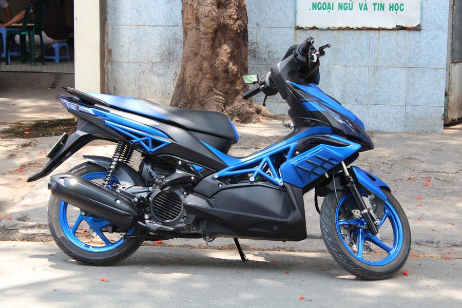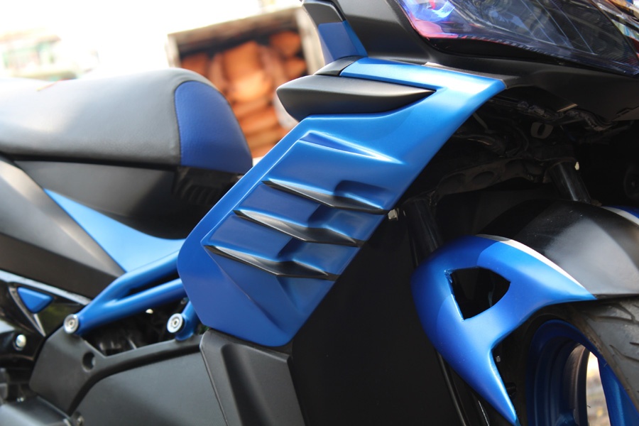 | Thân xe được phối màu sơn xanh-đen mờ khá độc đáo. |