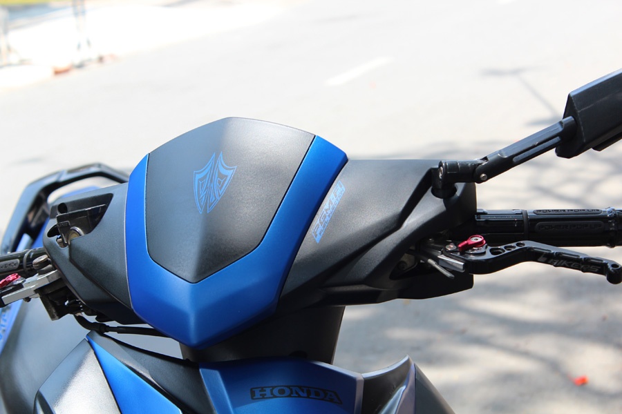 | Theo chia sẻ của nhóm thợ độ Airbrush Erick (142 Nguyễn Chí Thanh nối dài, Quận 11, TP. HCM), công đoạn khó nhất trong quá trình độ chiếc Air Blade này là làm láng bề mặt sản phẩm. Thời gian để thực hiện mẫu xe này là 6 ngày. |